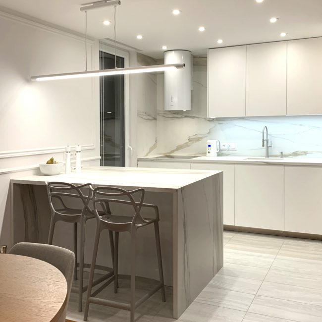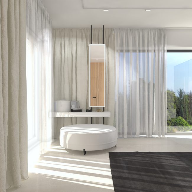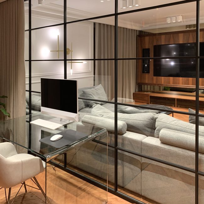 Zlokalizowany na ostatnim piętrze, w zacisznym zakątku krakowskiego podgórza, przestronny apartament łączący nowoczesne rozplanowanie przestrzeni i kubiczne kształty z klasycznym detalem. Odpowiednio rozplanowane gipsowe sztukaterie w formie gzymsów i ekranów nie tylko są piękną dekoracją, ale też są sposobem na poprawę proporcji pomieszczeń.